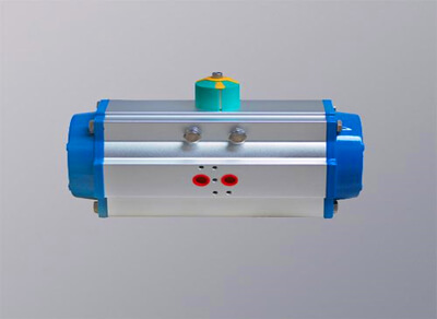 当压缩空气从A管咀进入气动执行器时,气体推动双活塞向两端(缸盖端)直线运动,活塞上的齿条带动旋转轴上的齿轮逆时针方向转动90度,阀门即被打开反之,当压缩空气从B官咀进入气动执行